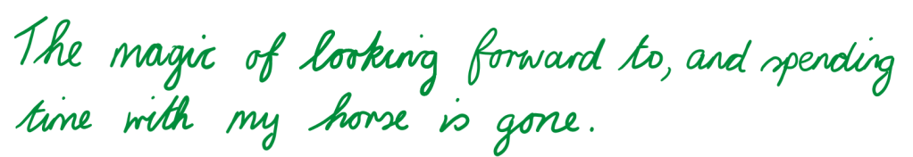 I think a large part of why I feel a little lost with it all now is that I don’t have the same community, routine and even the same horse as I did before.